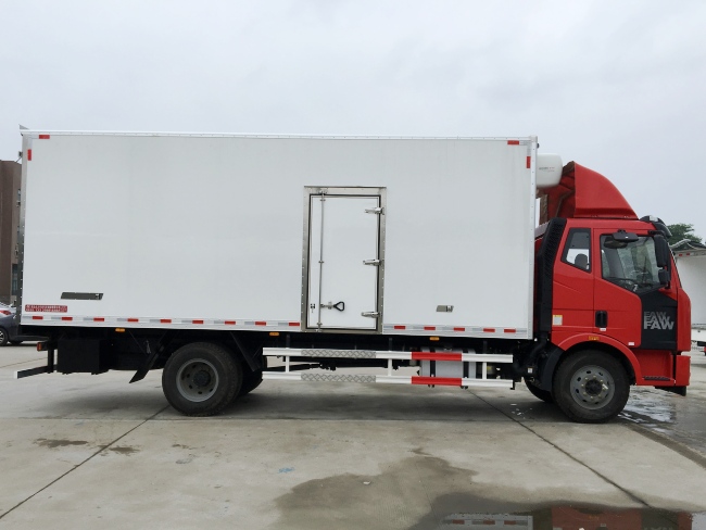 • 冷藏車是指用來運輸冷凍或保鮮的貨物的封閉式廂式運輸車,冷藏車是裝有制冷機組的制冷裝置和聚氨酯隔熱廂的冷藏專用運輸汽車,冷藏車可以按生產廠家、底盤承載能力、車廂型式來分類。冷藏車常用于運輸冷凍食品(冷凍車),奶制品(奶品運輸車)、蔬菜水果(鮮貨運輸車)、疫苗藥品(疫苗運輸車)等